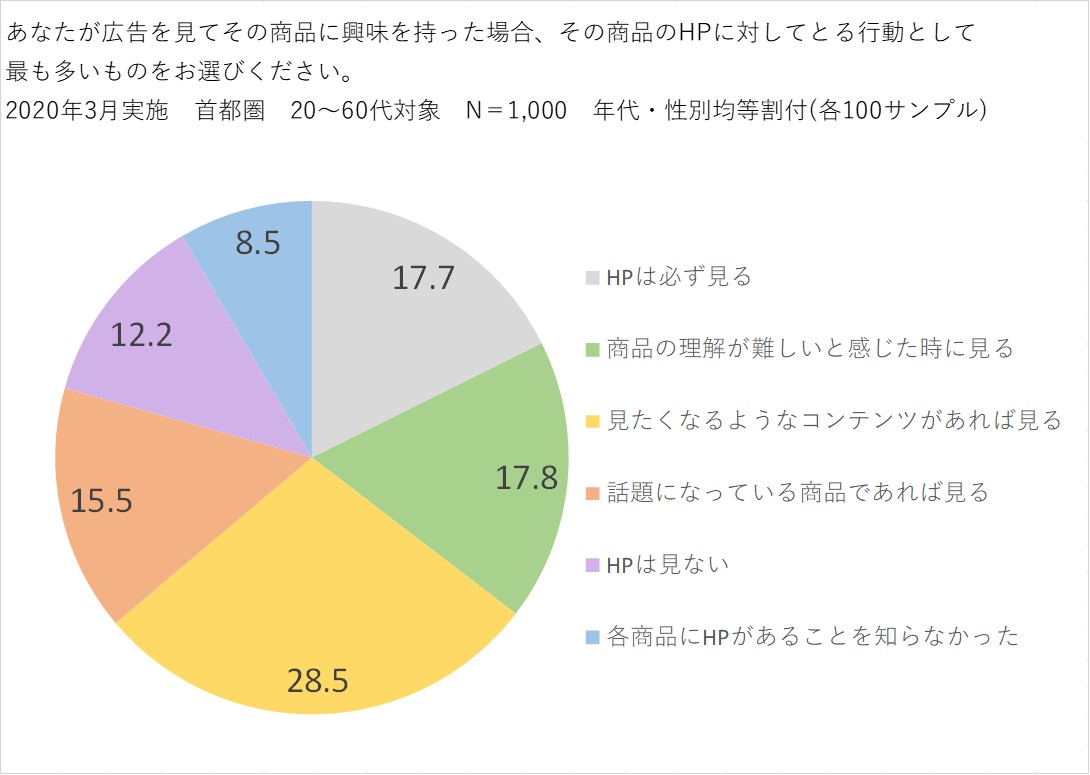 そこで、今回は「あなたが広告を見て、その商品に興味を持った場合、その商品のHPを見ますか?」というアンケートを実施しました。
