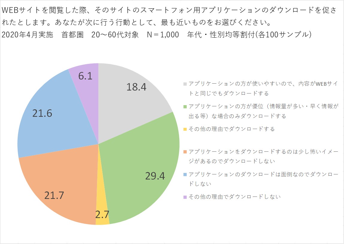 対して、私と同じ「面倒なのでしない」が約20%。アプリをDLさせていく上では、こうしたハードルを越えていく必要がありそうです。
