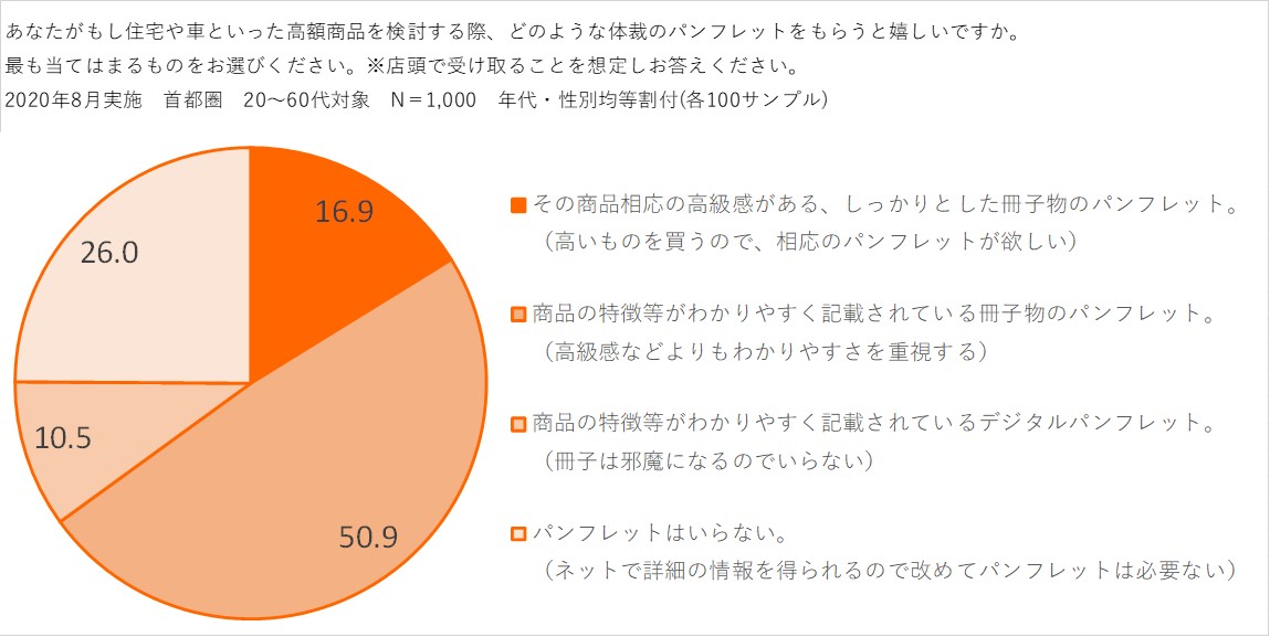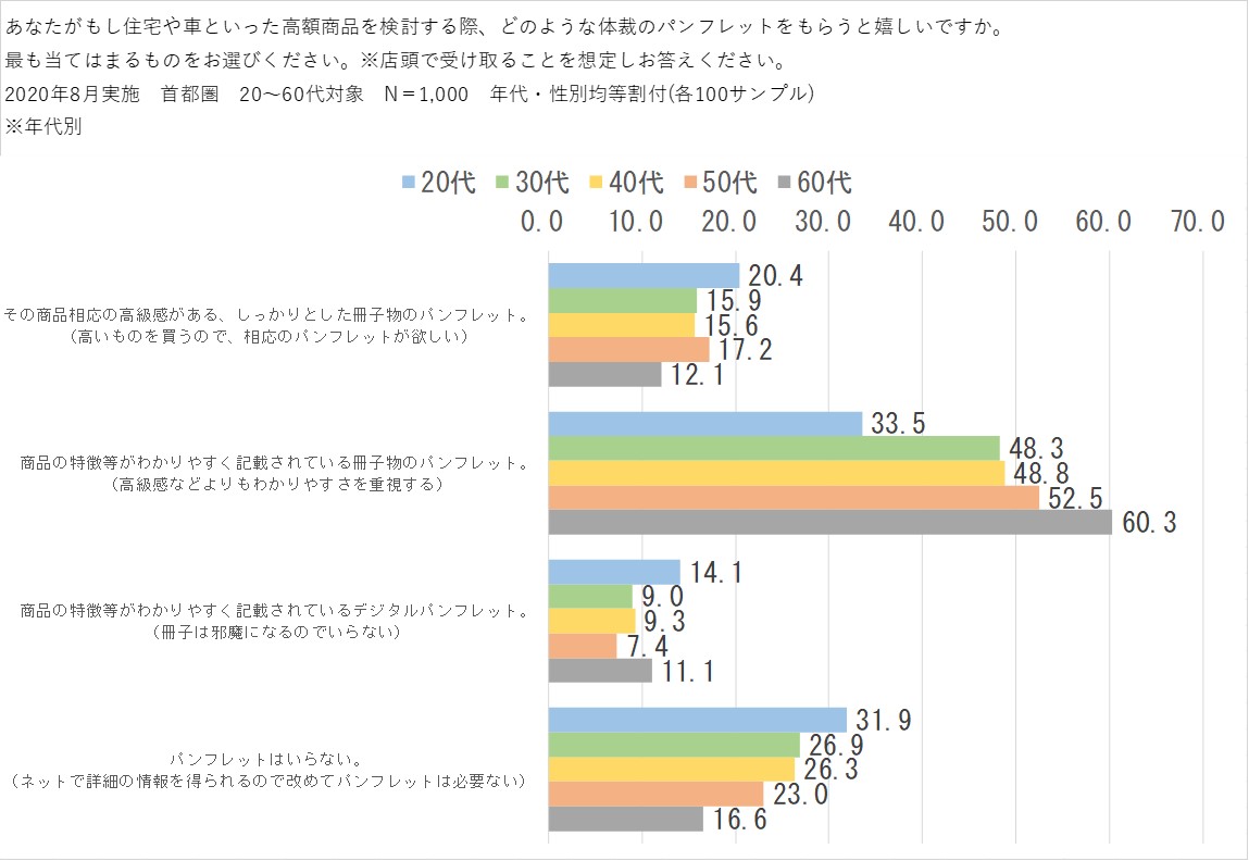 ■設問:あなたがもし住宅や車といった高額商品を検討する際、どのような体裁のパンフレットをもらうと嬉しいですか。