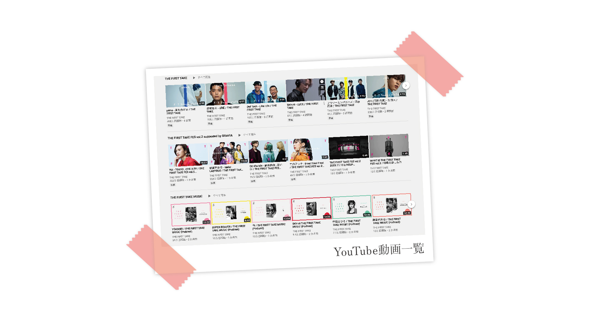 最近、家時間が増えそれに伴ってYouTubeを見る機会が増えました。そんな中で最近1つよく見るチャンネルをご紹介します。名前は「THE FIRST TAKE」。意訳すると「一発撮り」です。現在登録者は約300万人。総再生回数は約5億回を誇るチャンネルです。
