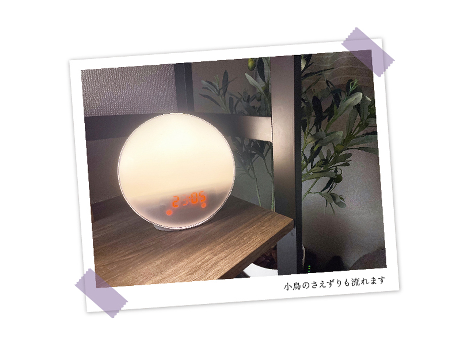 皆さんは毎朝スッキリと目が覚めていますか?一日のストレスが朝の目覚ましから始まる方も多いのではないでしょうか。私自身も、毎朝スヌーズ機能を2.3回繰り返して起きるため、スッキリとは程遠い目覚めです。そんな中、友人から教えてもらったのが「光目覚まし時計」。人間の体内時計は強い光を浴びる事でリセットされていき、常に14時間~16時間後に睡眠をとるように設定されているそうです。光目覚まし時計は、時間の30分前から徐々に明るくなっていき、時間になれば音(小鳥のさえずり)が鳴るというシステムで、擬似的に光を浴びることで、目覚めのために分泌されるセロトニンによって気持ちよく目覚められる、とのこと。早速使ってみたところ、「まぶしいなあ」と思いながらも自然に目が覚め、いつもよりスッキリと起きられた気がしました!今後使い続けて、どのような効果が出てくるか楽しみです。テレワークなどの新しい生活様式が浸透し、生活も大きく変化しているなかで、睡眠の質も重要視されています。光目覚まし時計の自然な光を浴びて起きることで、爽快な1日をスタートさせ仕事のパフォーマンスも上げていきたいですね。