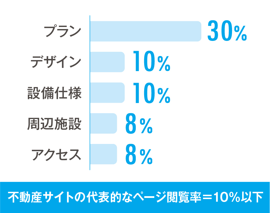 不動産サイトの代表的なページも訪れた人のうちプランページは30%程度、