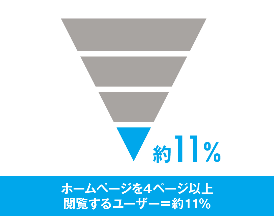 3ページ目を閲覧するユーザーの割合は約17%、4ページ以上閲覧するユーザーの割合は全体の約11%しかいません。