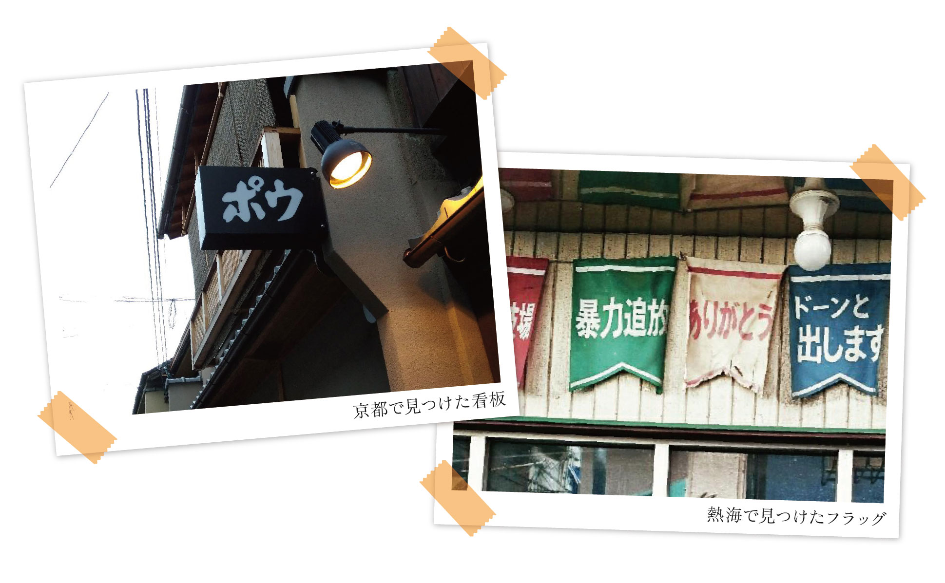 例えば左の写真は京都・祇園で見つけた看板です。周りがまさに祇園の素敵な街並みであるにも関わらず、出てきた看板が「ポウ」。3度見しました。後から調べたところバーのようです。いいですね。祇園で美味しいウイスキーでも飲めたら…。