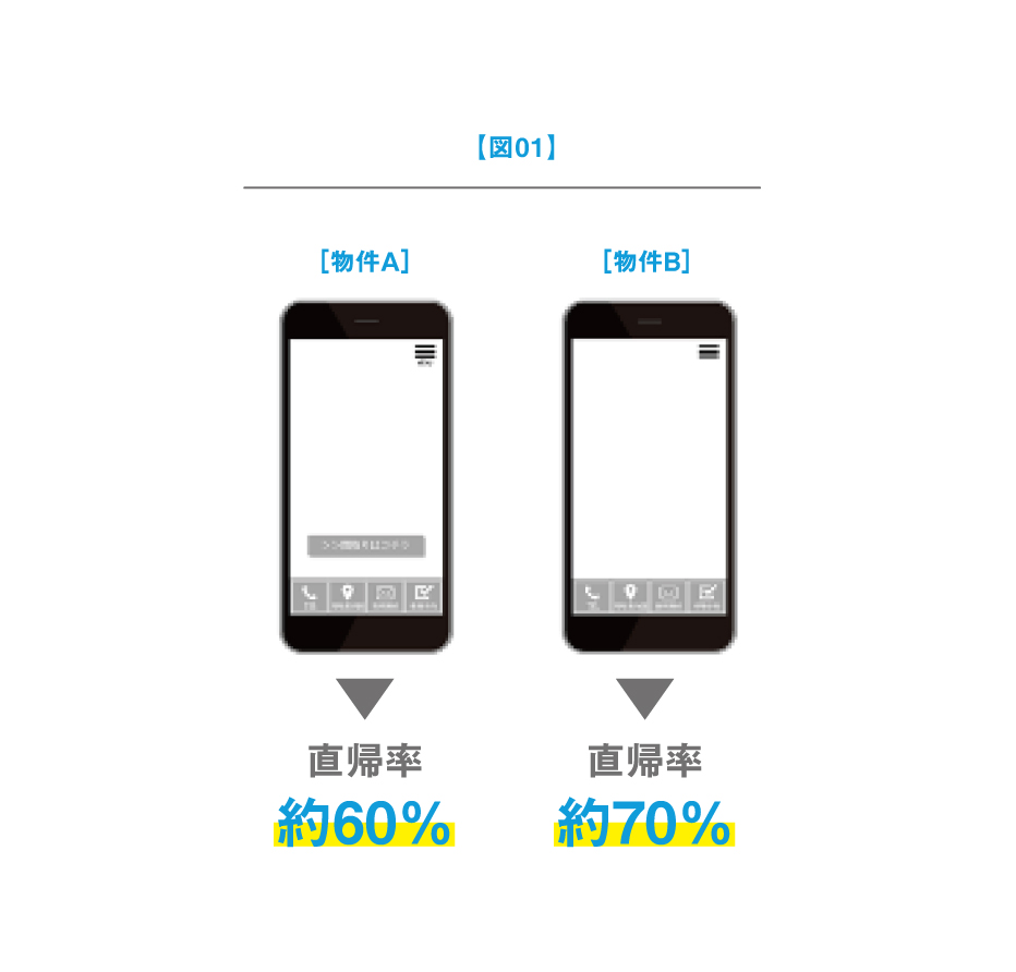 ではこのラインを上回ってしまう場合はどのように改善すべきなのか。当然、トップページでしっかり興味喚起ができていない場合もあるが、一旦その場合を除いて、弊社にてホームページ分析を担当している物件を見比べていきたい。