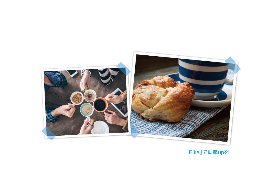 皆さんは「Fika/フィーカ」という言葉を聞いたことがありますか?徹底的に効率を追求する北欧の働き方の中で、意外にも1日に数回意識的に時間をとって「甘いものを食べながらのコーヒータイム」をとる文化習慣です。日本人に多い「ながら休憩」ではなく休む時にはしっかり休んで気分をリフレッシュすることや、話を楽しんで周囲と円滑な関係を築くきっかけにするという意味で重視されているようです。冬の日照時間の少ない環境でも、世界で常に時間当たりの労働生産性が上位にある北欧の国々の働き方には、こういった「有益な余白」を生み出すことが自己活性化につながっている秘訣なのかもしれません。