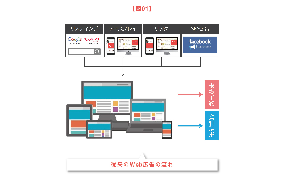 そして、そのHPから来場予約や資料請求を獲得するのが一般的だろう。【図01】