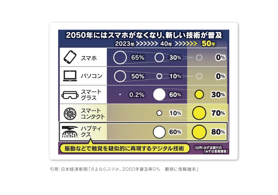 2050年には、スマホやPCの普及率が0%になる―みずほ銀行の産業調査部「2050年の日本産業を考える」という報告書でそんな数字が示唆されました。