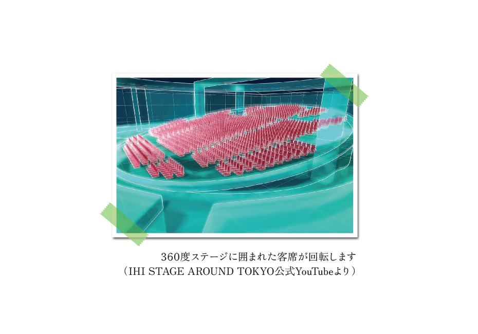 衝撃的な第1話が話題となった「推しの子」、皆さんご覧になられていますでしょうか。現在2期目(2.5次元舞台編)が放送されているアニメで毎話楽しみにしています。2期目は舞台の話なのですが、そこまで舞台に詳しくない人でもアニメを楽しめるよう、随所で舞台や演劇に関する知識を分かりやすく紹介してくれているシーンがあります。恥ずかしながら私も舞台を見たことがない人間の一人で、そんなシーンに助けられていて、その中で実際に体験してみたくなったものがありました。「ステージアラウンド型舞台(劇場)」というものです。巨大な円形の客席自体がシーンに合わせて回転、360度全方位を使ったステージが楽しめる没入型エンターテインメント施設で、音楽等も通常の劇場とは異なる感覚で楽しめるようです(世界で2番目、日本で唯一の劇場があったようなのですが、残念ながら諸事情で閉館してしまっています…)。