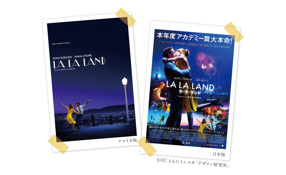 よく日本の広告と海外の広告は魅せ方が違うと言われますが、特に映画のポスターは魅せ方が違うように思えます。ジブリ・ディズニー映画などのアニメ、アクションから恋愛ものまでいろいろとありますが、個人的には「千と千尋の神隠し」と「ラ・ラ・ランド」が印象的です。
