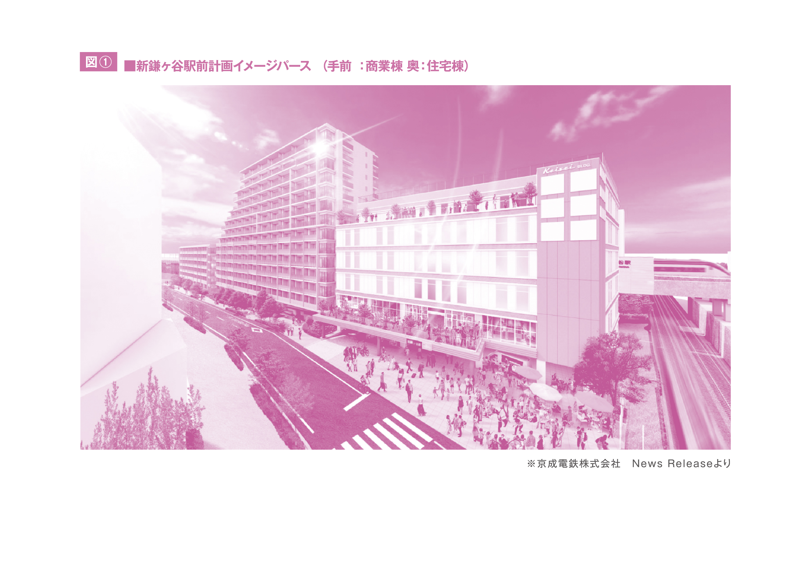千葉県の北西エリアで人気の駅と言えば、「柏の葉キャンパス」や「流山おおたかの森」が有名であるが、近年同エリアで変化の著しい駅がある。それが「新鎌ヶ谷」だ。近隣の行政と比較すると地価に割安感のある鎌ヶ谷市だが、新京成線の連続立体交差事業により、踏切が除去されるなど、街の開発が進んでいる。そして現在、新鎌ヶ谷駅南側の長らく空地となっていた県有地約7,000平米の土地に新鎌ヶ谷駅直結の複合施設(商業棟)と分譲マンション(住宅棟)の2棟の建設が進行中である。【図①】 商業棟は、地上6階地下1階建て、低層階に飲食・物販店が入り、上層階にはオフィスを誘致する計画となっている。また、駅の南北を往来できる自由通路や広場を整備することで、駅周辺の賑わいの創出と回遊性向上が期待されている。本記事では、再開発が進んでいる新鎌ヶ谷駅周辺に着目し、実際の不動産需要や、今後の市場拡大の可能性を考察していく。