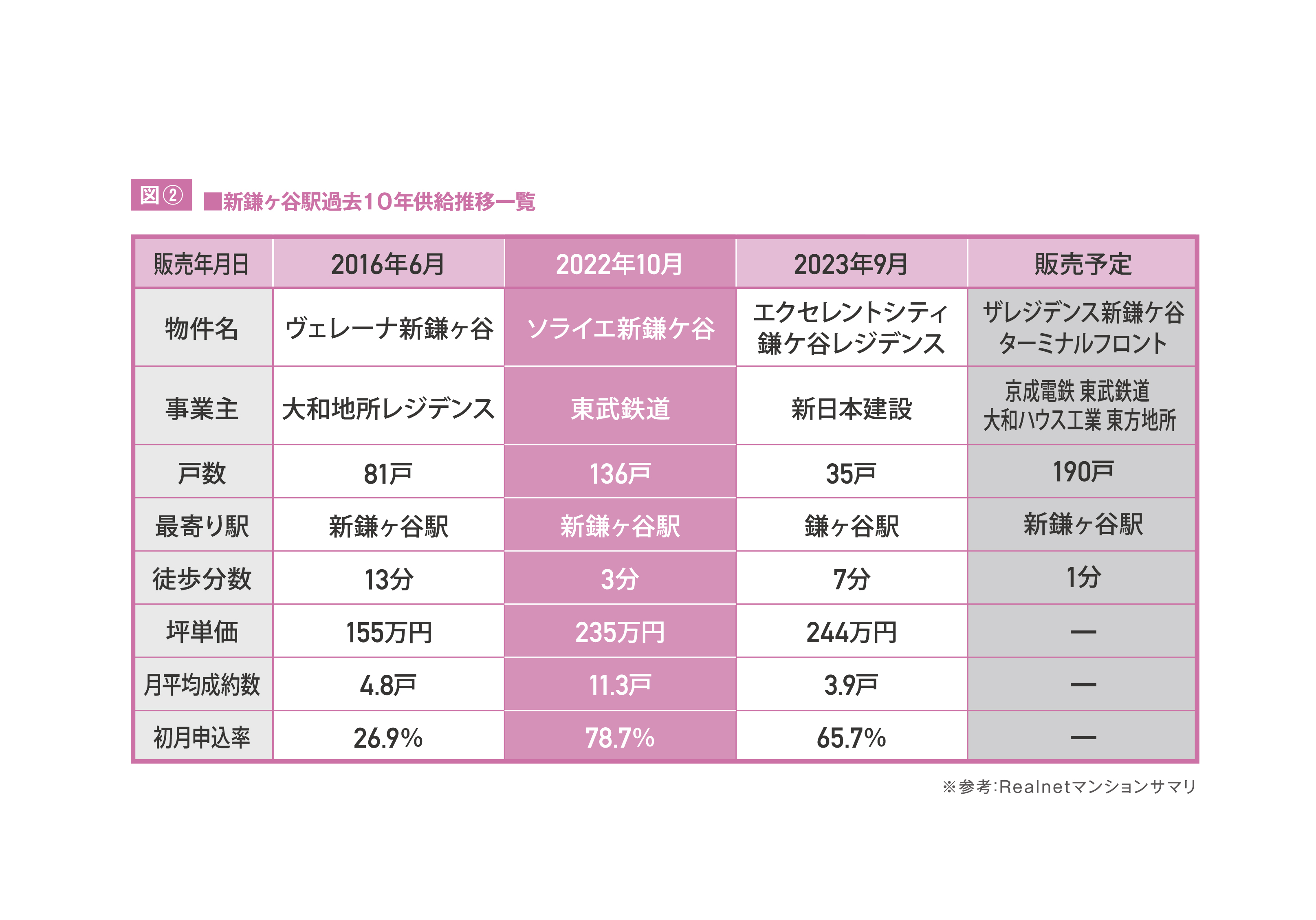 元々、戸建て需要の強いエリアであり、これまでマンション市場の拡大は見られなかったわけだが、駅前の再開発事業をきっかけに成長を遂げた事例は多数あることから、新鎌ヶ谷駅周辺のマンション市場規模が拡大する可能性は十分に考えられる。