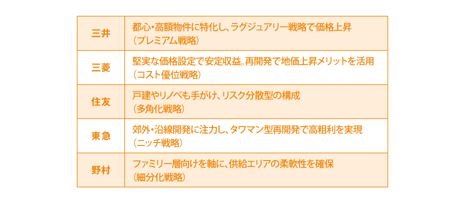 「この記事の本質は“価格高騰”そのものではなく、その裏側で各社がいかにして“競争優位性”を築いているか、という点にあります。これはまさに、マーケティングでいう【ポジショニング戦略】の好例です。さらに、例えば大手5社の特徴をマーケティング視点で整理すると以下の通りです。」