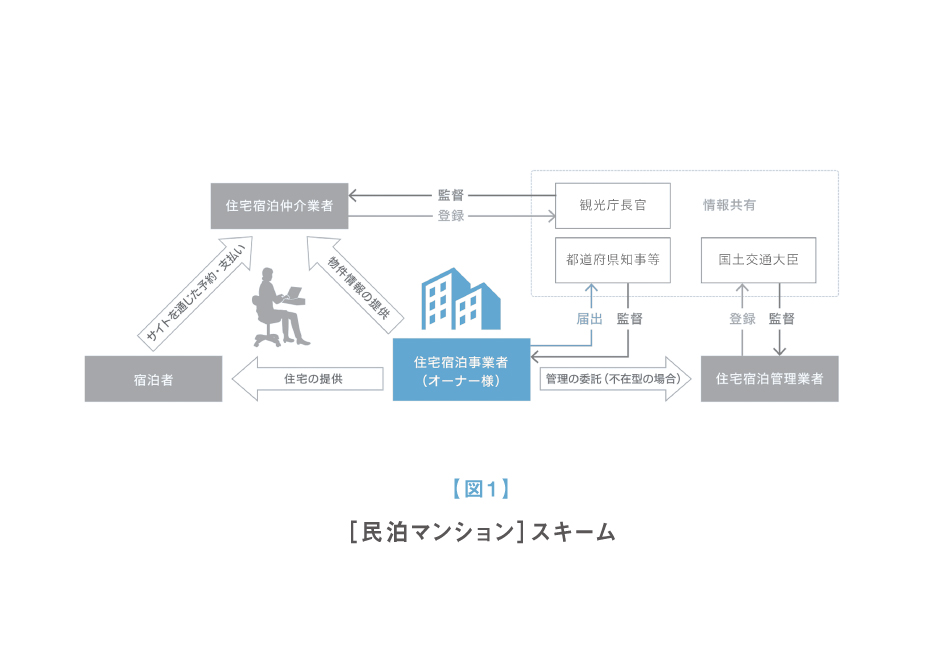 昨今、新築分譲マンション業界で「民泊マンション」という新しい形のマンションが販売され始めた。通常の分譲マンションと同じように販売されるのだが、その最大の特徴は自身が利用しない期間に民泊として貸し出すことができるという点にある。つまり、セカンドハウスや別荘として所有しながら、空いている時期には宿泊施設として運用できるーそんな柔軟なライフスタイル対応型のマンションである【図1】。運営や管理は専門の会社が担うため、オーナーが宿泊客対応や清掃を行う必要はなく、利用しない時期でも部屋を有効活用したいというセミ投資・セミ実需のニーズに支えられているようだ。では一体どのような背景で誕生したのか、そしてその実例を確認していく。
