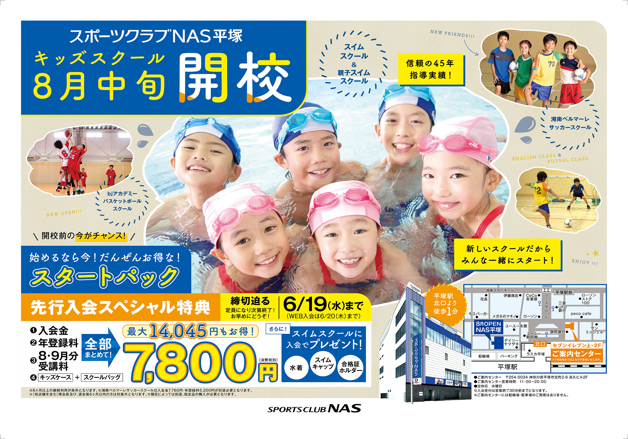平塚駅北口徒歩1分で通いやすく、キッズスクールの種類も豊富。