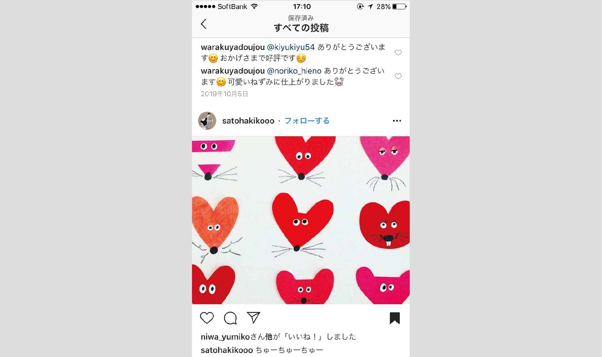 インスタで見つけたデザイン。ハートをモチーフにネズミをつくる。 って部分をパクってます。