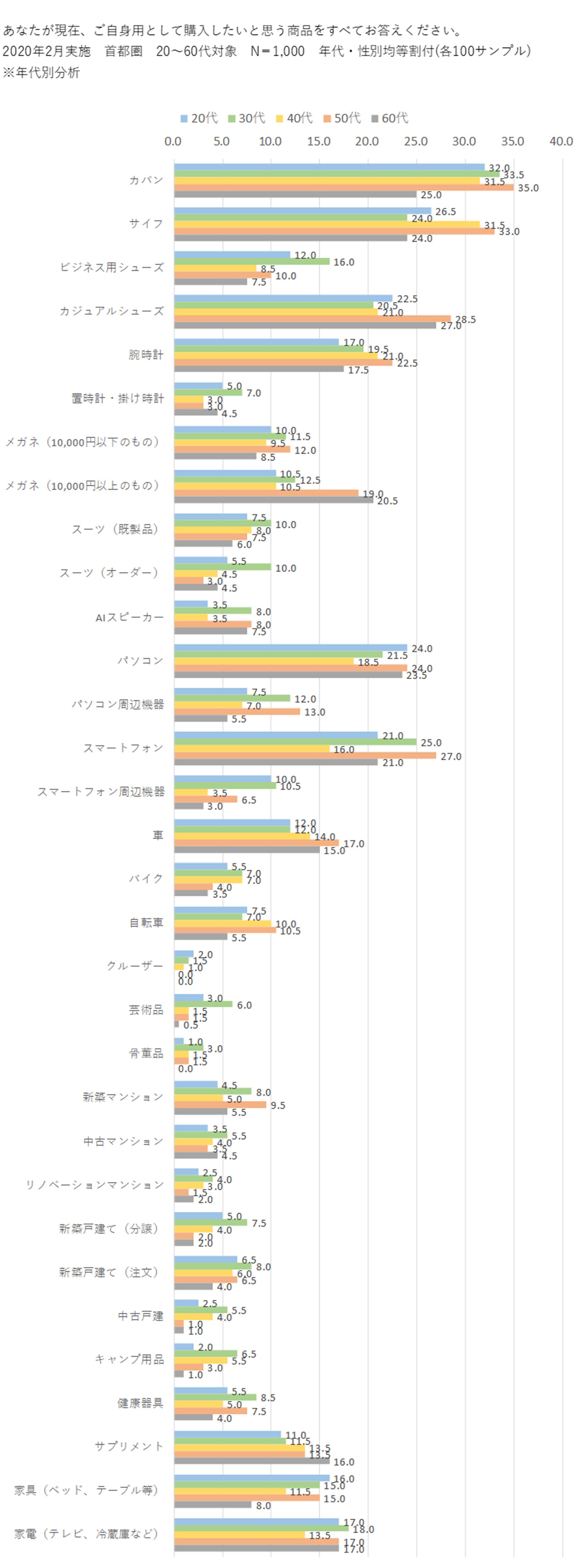 様々な商材を対象に、「今買いたいもの」というアンケートを実施。